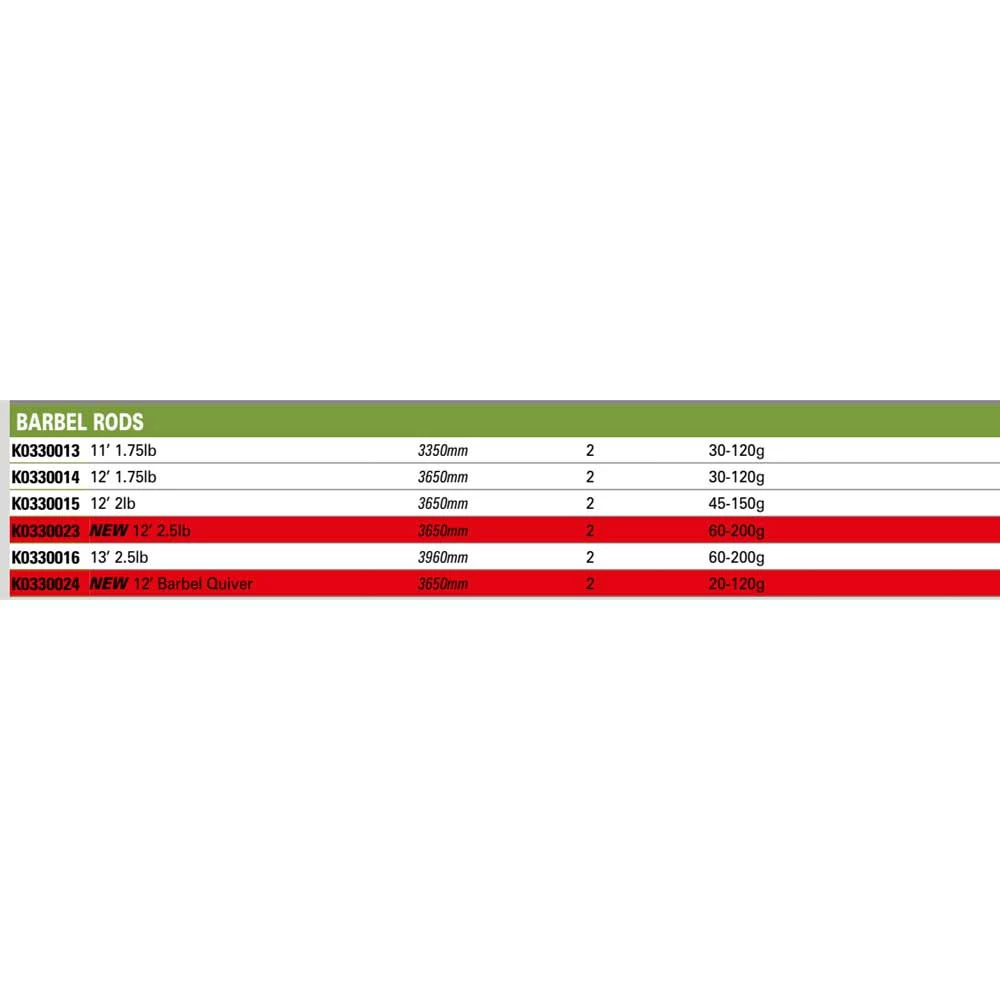 12´ Barbel Quiver – This powerful quiver rod is perfect when fishing in low-water conditions.
